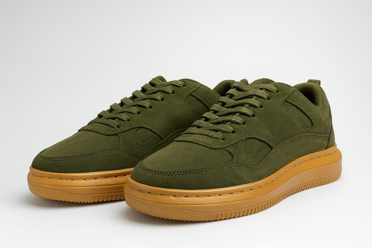 Designed in rich olive green suede and elevated with a bold tan gum sole, these sneakers bring effortless style and comfort to every step. Whether paired with smart casuals or streetwear fits, this versatile design is crafted to make a statement.